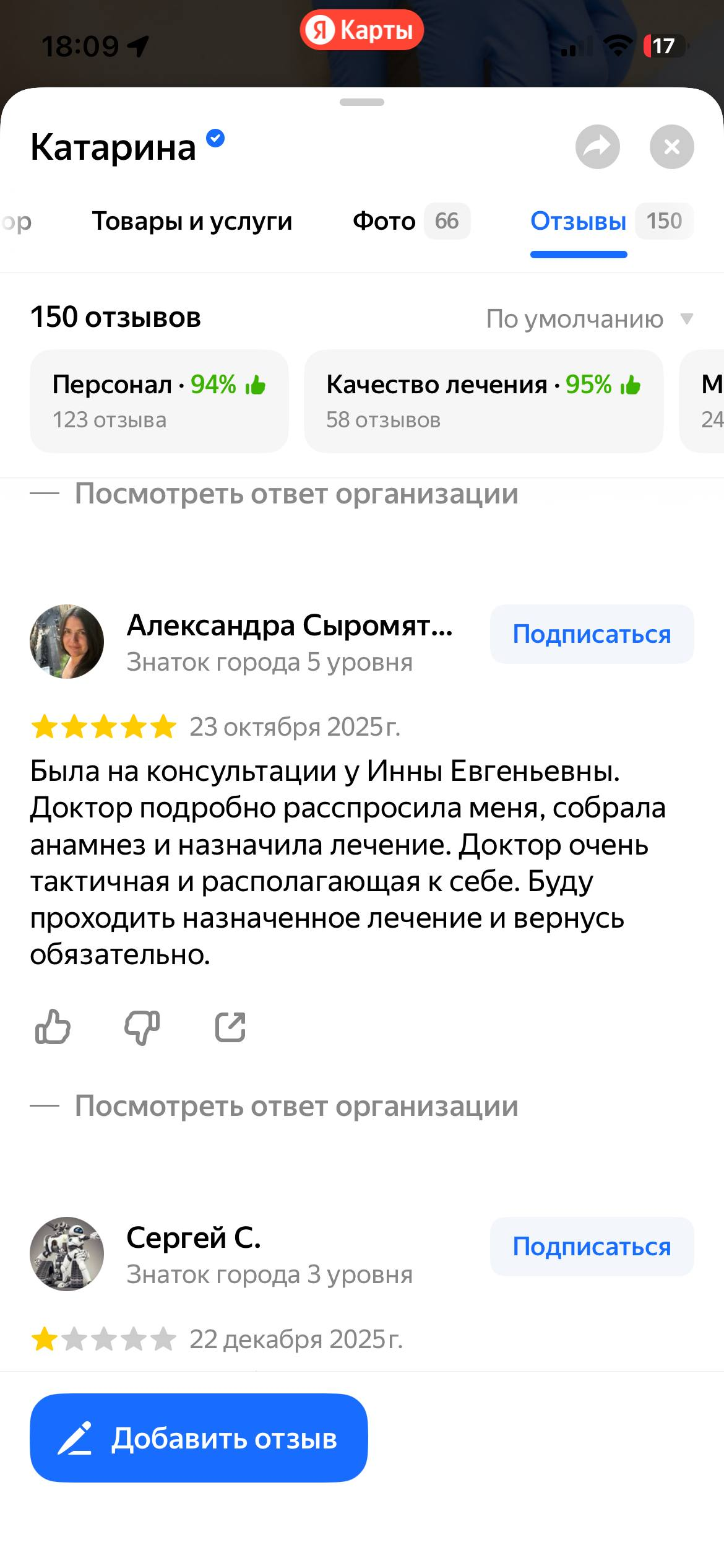 Была на консультации у Инны Евгеньевны. Доктор подробно расспросила меня, собрала анамнез и назначила лечение. Доктор очень тактичная и располагающая к себе. Буду проходить назначенное лечение и вернусь обязательно.